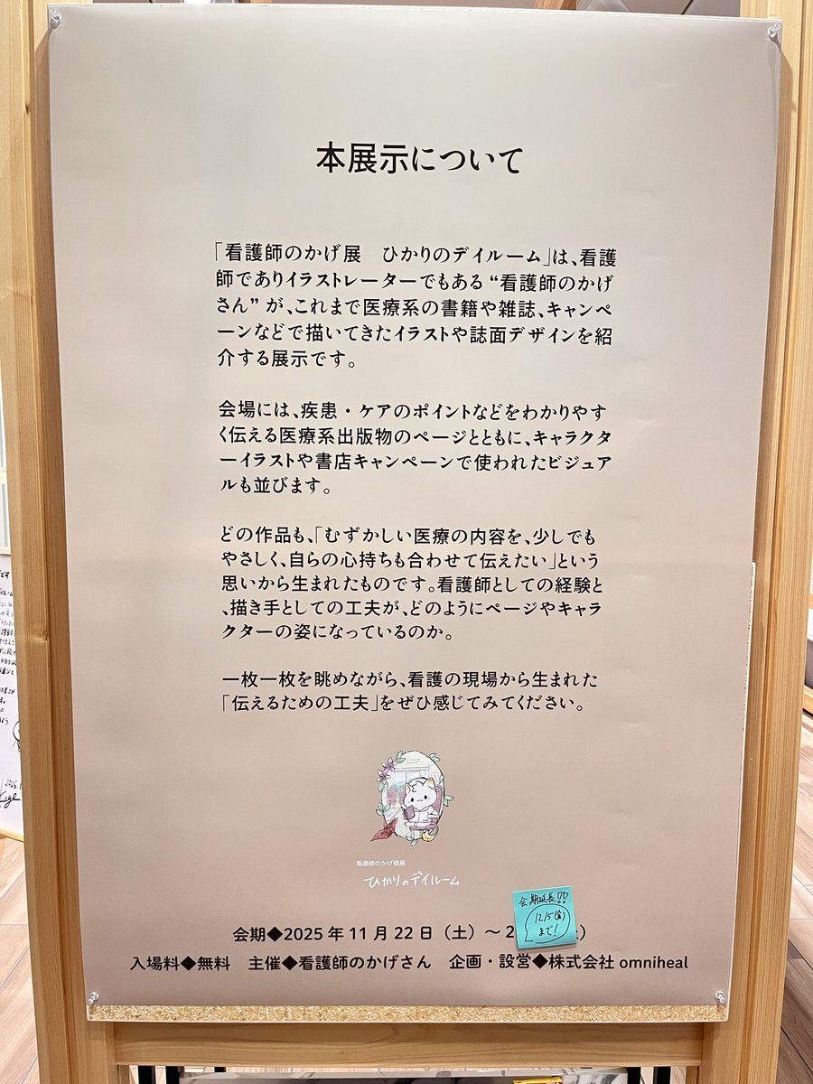 ご好評につき開催延長!(予定通り…ニヤリ) 「看護師のかげ展~ひかりのデイルーム~」は、中野区役所1階で無料開催中! 基本的に区役所の開館時刻(08:30〜21:30)での公開、お出かけや仕事の帰りにも寄れます。 看護の話に留まらず、どこの職場でも共感できる内容ばかり。 メッセージボードも是非! pic.x.com/QH7xFFiME6 x.com/omniheal249811…